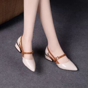 Jitian Dadong genuine leather baotou sandals pointed toe summer new thick heel medium heel soft leather one-word buckle flat bottom